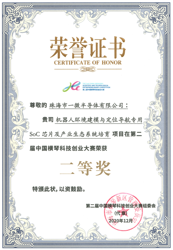 第二屆中國橫琴科技創業大賽二等獎