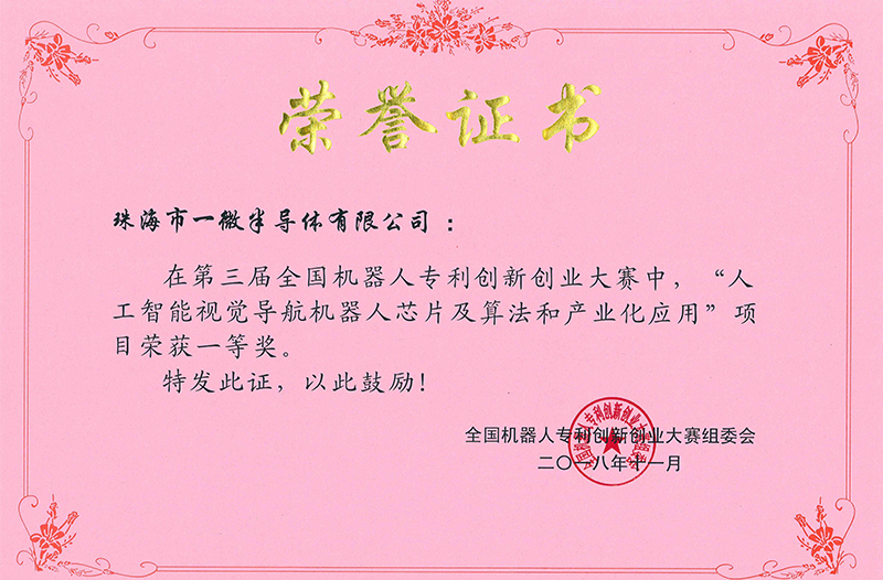 • 獲得全國機器人專利創新創業大賽一等獎