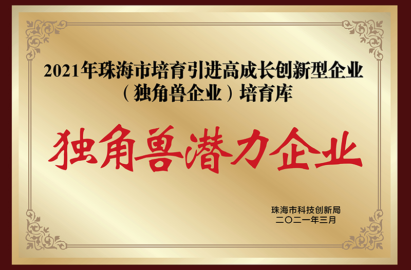 • 獲評珠海市獨角獸潛力企業