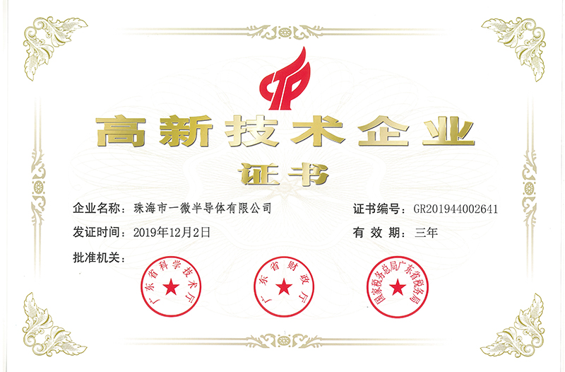 • 獲評珠海市知識產權優勢企業